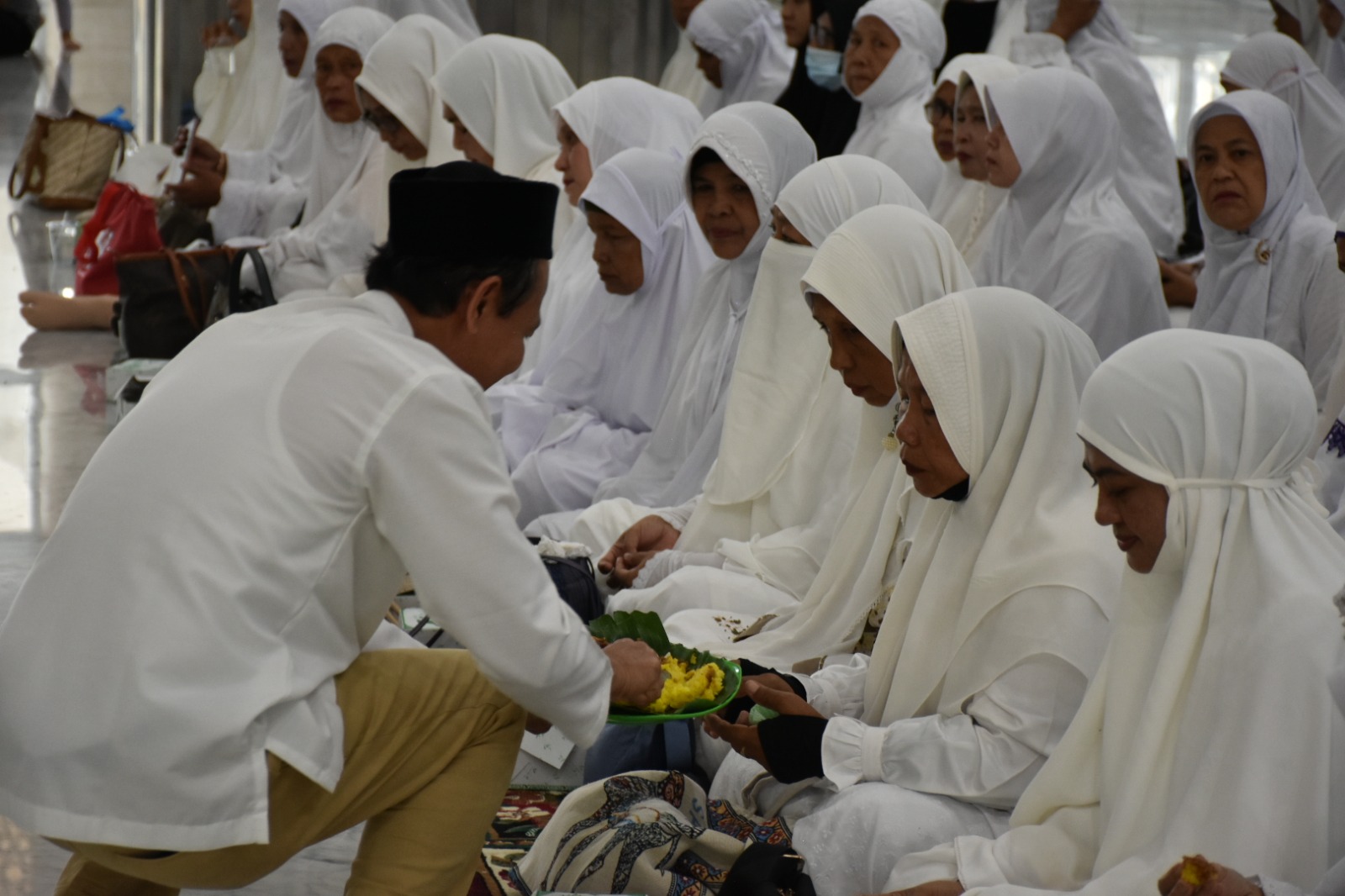 Iringan lantunan shalawat kepada junjungan alam Nabi Besar Muhammad SAW menambah kesakralan prosesi Peusijuk (Adat Aceh) yang berlangsung khidmat di Masjid Agung Darul Falah Kota Langsa pada pagi Jum’at (16/06/2025) yang penuh berkah.