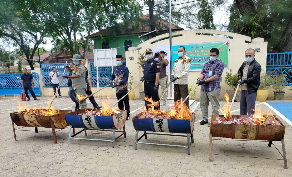 Proses pemusnahan dilaksanakan secara terbuka dan akuntabel dengan cara rokok dipotong terlebih dahulu untuk menghilangkan bentuk fisik dan kegunaannya, kemudian dimusnahkan dengan cara dibakar di Tempat Pembuangan Akhir (TPA).