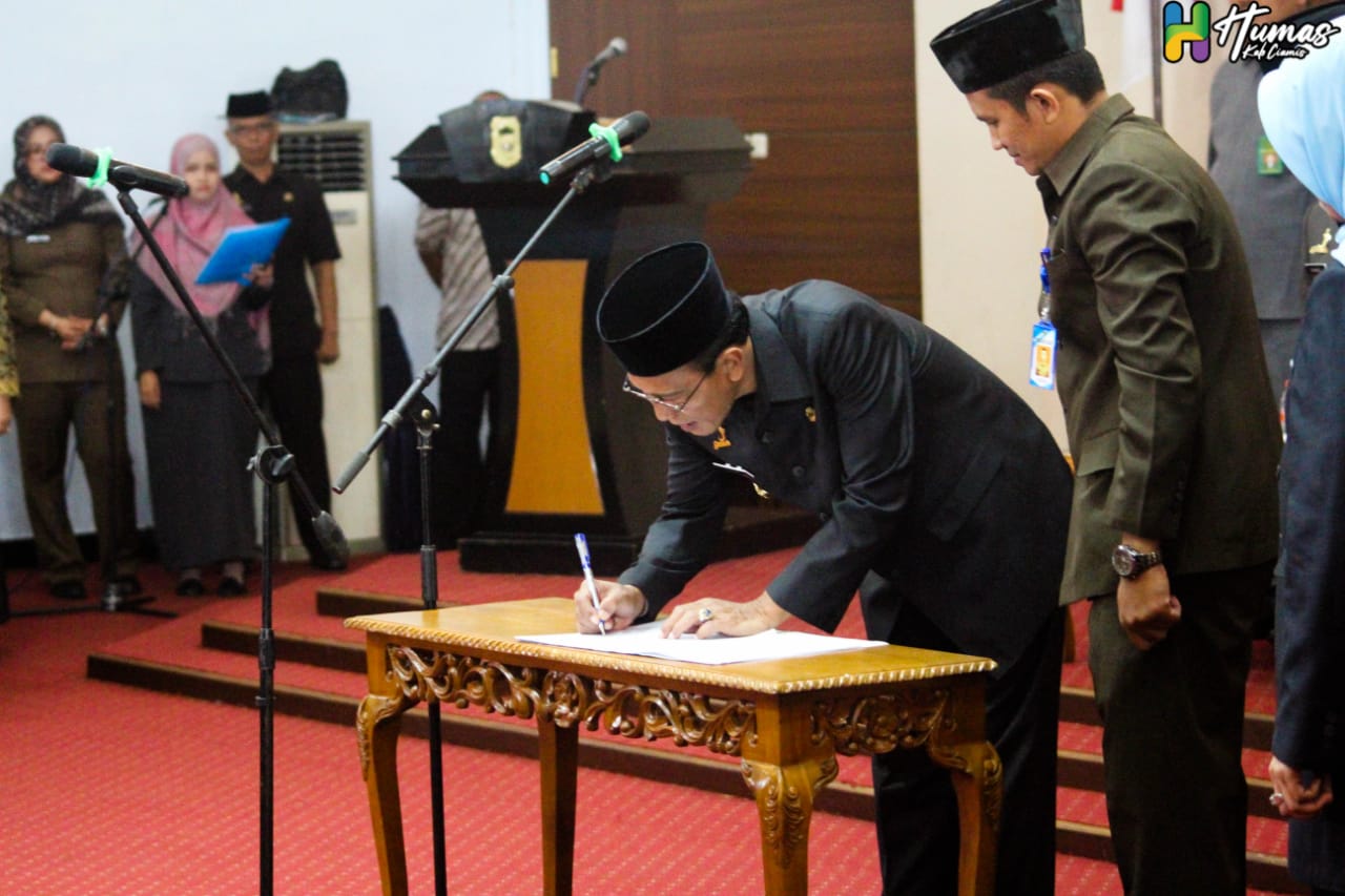 Ciamis, Wartanusa.id – 157 Pejabat Tingggi Pratama dan Administrator di lingkungan pemda pemerintahan daerah Kabupaten Ciamis di ambil sumpah jabatan oleh Bupati ciamis Dr.H.Herdiat Sunarya, MM., bertempat di Aula Setda , Kamis (2/1/2020).