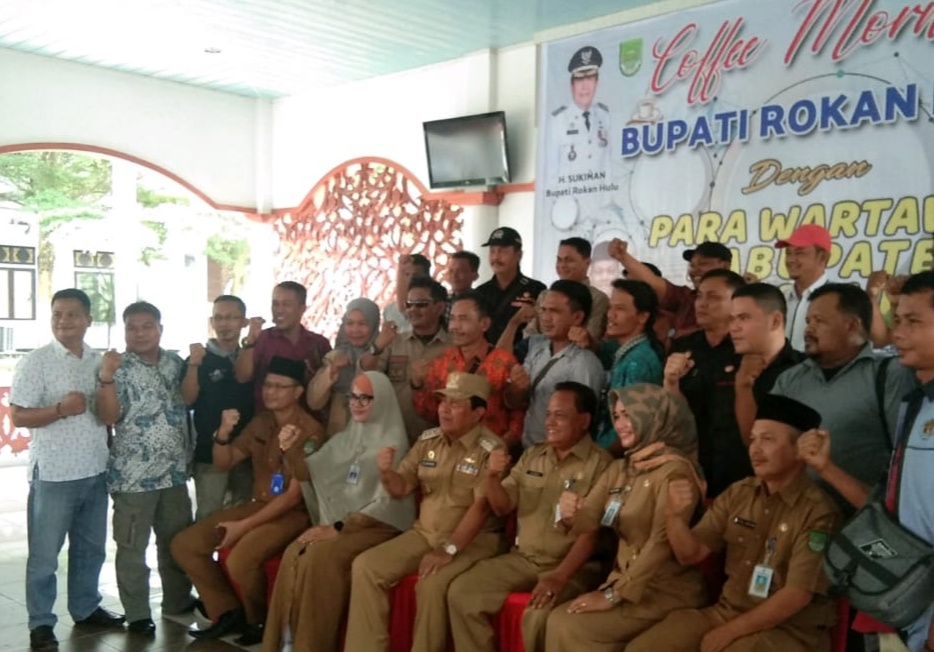 Rohul, Wartanusa.id – Dalam kegiatan Coffe Morning, Bupati Rokan Hulu H.Sukiman, di dampingi Kepala Dinas Komunikasi Informasi (Kominfo) Rohul Drs Yusmar, Plt Kabag Humas Setdakab Rohul, Tanti Ekasari, SS, MSi, dan puluhan wartawan, di Rumah Dinas (Rumdis) Bupati, Desa Pematang Barangan, Kecamatan Rambah, Senin (6/1/2019).