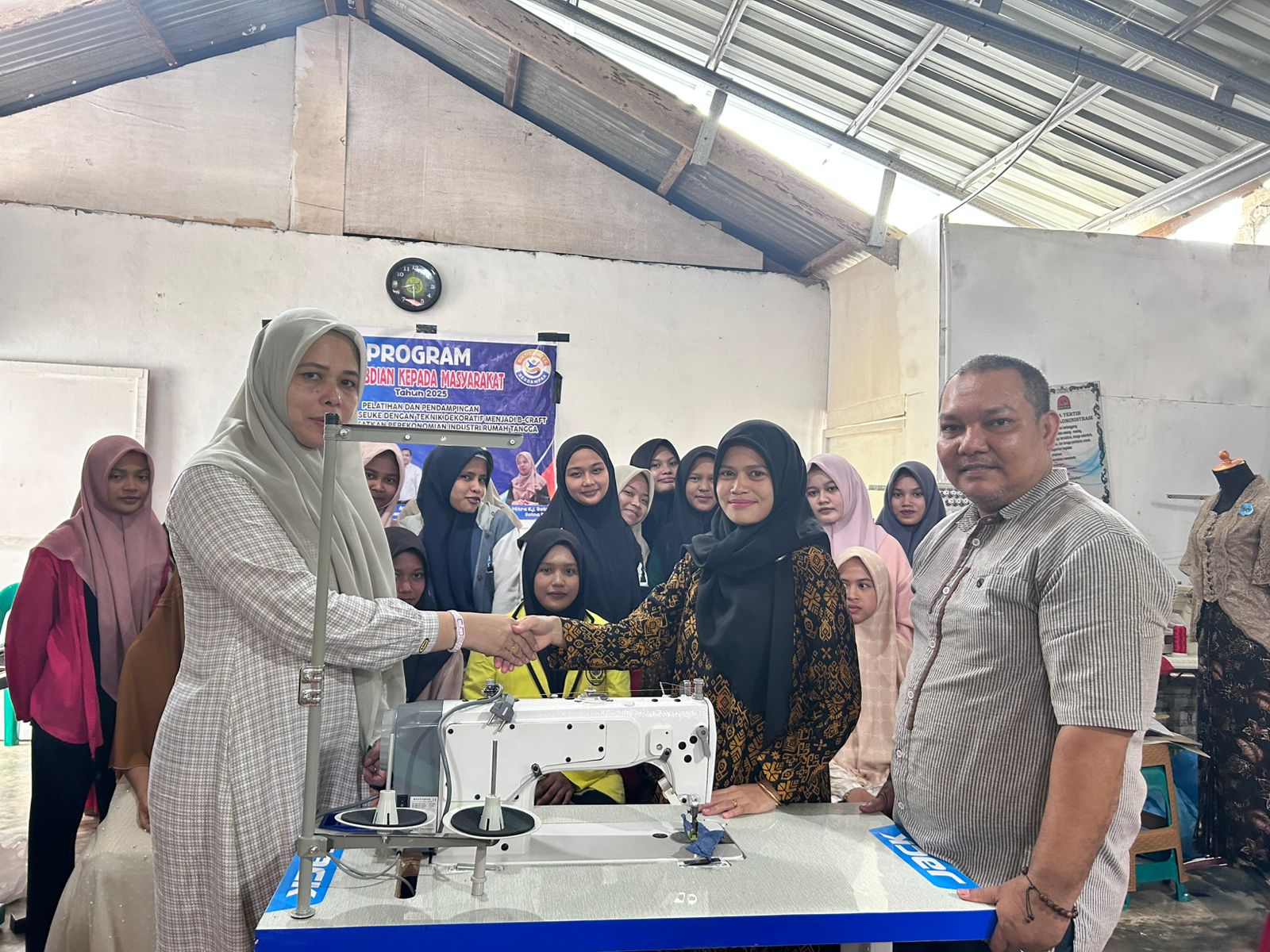 Usai pelatihan dan pendampingan, di akhir kegiatan tim juga menyerahkan Mesin Jahit Industri untuk UMKM Kj.Ratna Pengrajin Tikar Pandan Desa Seuneubok Pidie Kabupaten Aceh Timur sebagai cinderamata.