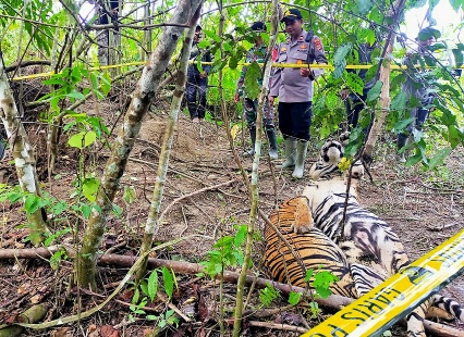 “Dugaan sementara kedua harimau tersebut mati terkena jeratan babi, karena saat ditemukan kondisi kaki kedua harimau tersebut terjerat dengan jenis jerat kawat tebal atau yang biasa disebut sling,” sebut Kapolsek.