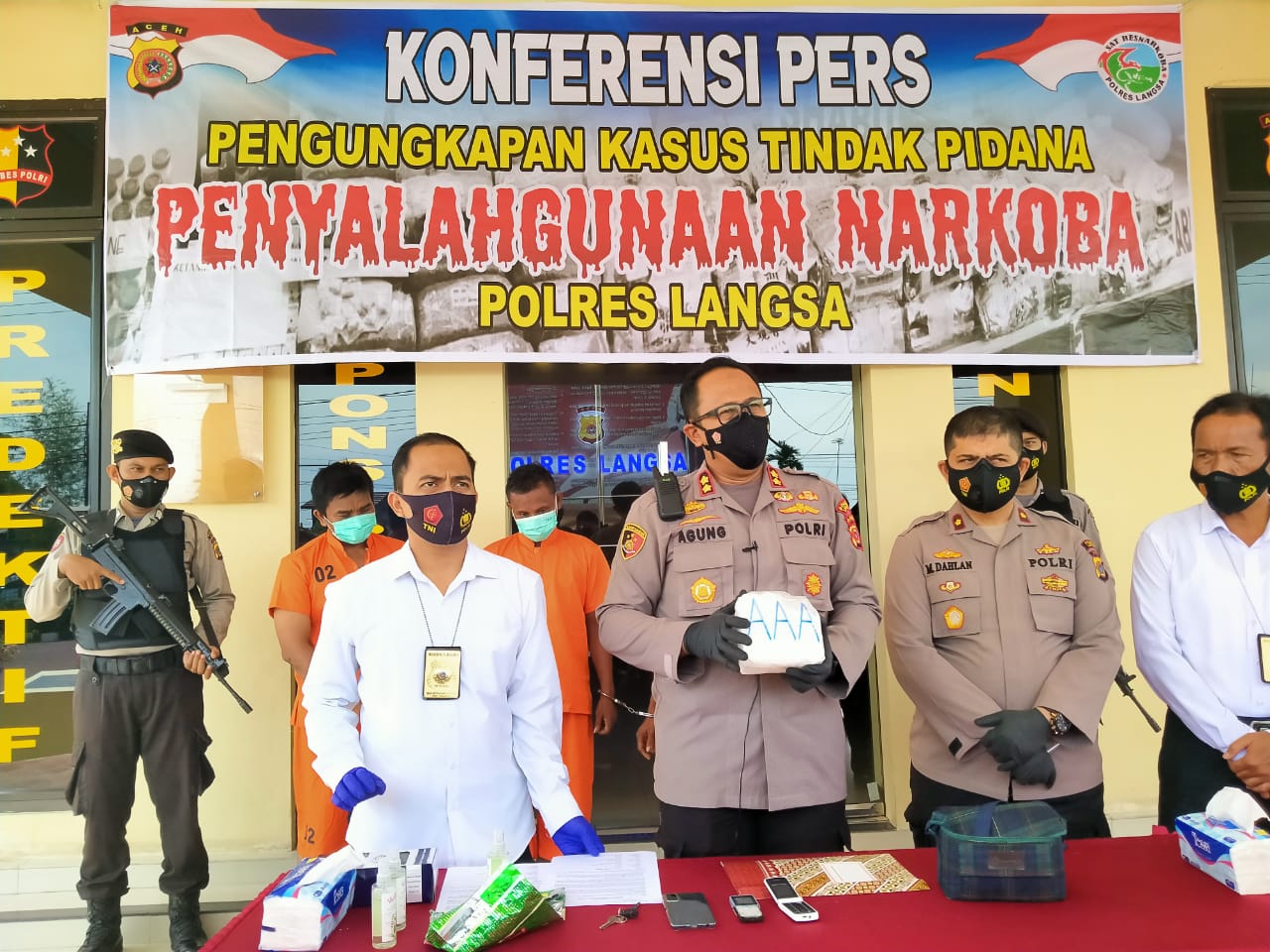 Kapolres Langsa AKBP Agung Kanigoro Nusantoro SH, SIK, MH didampingi Wakapolres Langsa dan Kasat Resnarkoba, Iptu Imam Aziz Rachman,S.T.K., S.I.K dalam konfrensi pers, Kamis, (22/04/2021) mengatakan, berdasarkan informasi dari masyarakat akan ada proses transaksi sabu dalam jumlah besar, mendapat laporan itu, pihaknya melakukan penggerebekan terhadap sebuah rumah yang diduga dijadikan sebagai tempat melakukan transaksi jual beli Narkotika jenis Sabu tersebut.