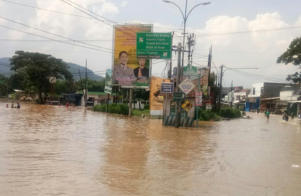 Bandung, Wartanusa.id – Pada hari rabu tanggal 18 Desember 2019 telah dilaksanakan pemantauan situasi banjir di jalan raya Banjaran menuju Dayeuh kolot diperkirakan ketinggian air sekitar 70.cm dan sementara masih dilakukan pengalihan ke jalur bojong soang, Akibat banjir tersebut beberapa wilayah yang masih belum bisa di lalui oleh pemakai kendaraan yaitu :
