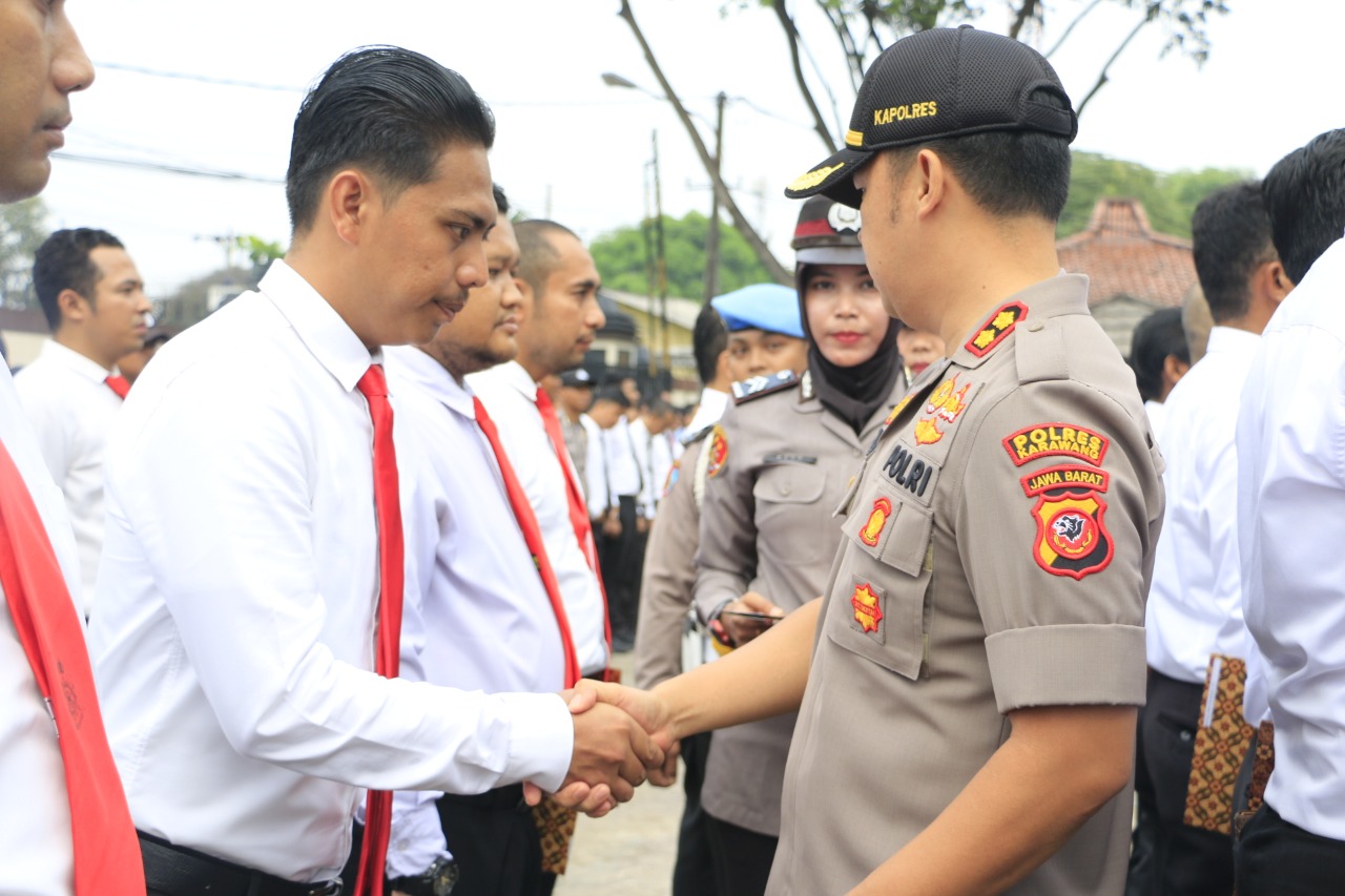 Kapolres Karawang dalam amanatnya mengatakan merasa sangat bersyukur karena selama dirinya menjabat Kapolres diPolres Karawang ini telah banyak menerima banyak prestasi atas dedikasi rekan-rekan, saya tidak bisa membalas jasa rekan-rekan, hanya penghargaan ini tapi Insyaallah doa saya dalam setiap kesempatan untuk kebaikan rekan-rekan dan anggota Polres Karawang selalu ada, ucap Kapolres.