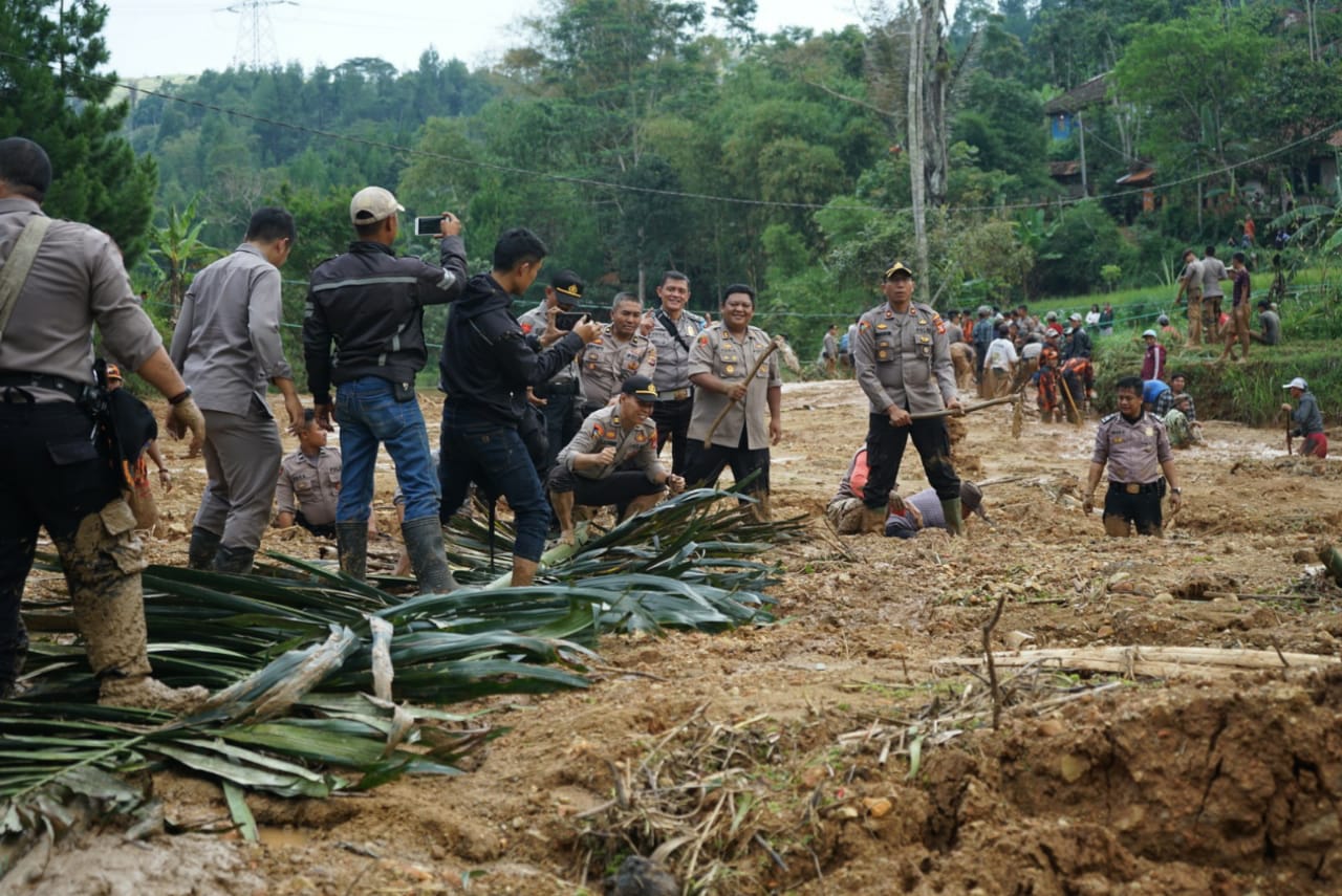 Adapun kegiatan yang dilakukan untuk membantu warga masyarakat yang terdampak longsor yaitu dengan membuat akses jalur yang tertimbun tanah longsor, membuka saluran sungai yang terhambat, memperbesar lebar sungai yang terkena longsor, pemeriksaan kesehatan oleh Urkes Polres Cimahi kepada warga sekitar,