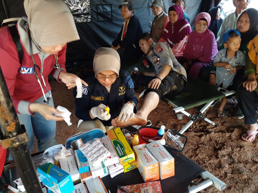 Pemberian obat – obatan kepada warga sekitar dan melaksanakan bakti sosial sembako kepada warga sekitar bencana tanah longsor. (Sandi)