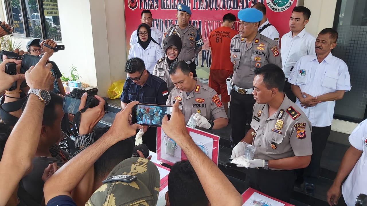 Bogor, Wartanusa.id – Selasa (21/1/2020) Kapolres Bogor Polda Jabar AKBP MUHAMMAD JONI, S.I.K., M.Si melaksanakan kegiatan Konferensi Pers Ungkap Kasus Perkara Home Produksi Ekstasi hasil pengembangan dan penyelidikan terhadap dugaan peredaran gelap narkoba wilayah hukum Polres Bogor. Tempat kejadian perkara di Jalan Kramat Pulo Kel. Kramat Kec. Senen Jakarta Pusat.