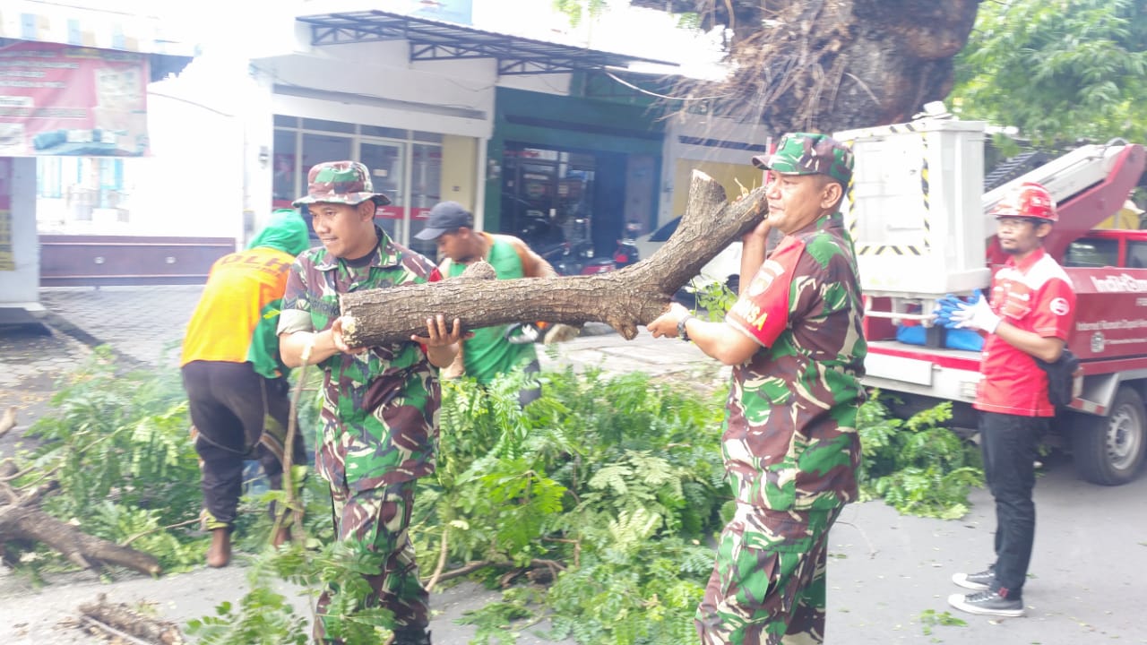 TNI Bersama OPD Pemkot Surakarta Laksanakan Pemangkasan Ranting Pohon Dalam Rangka Cegah Bahaya Pohon Tumbang