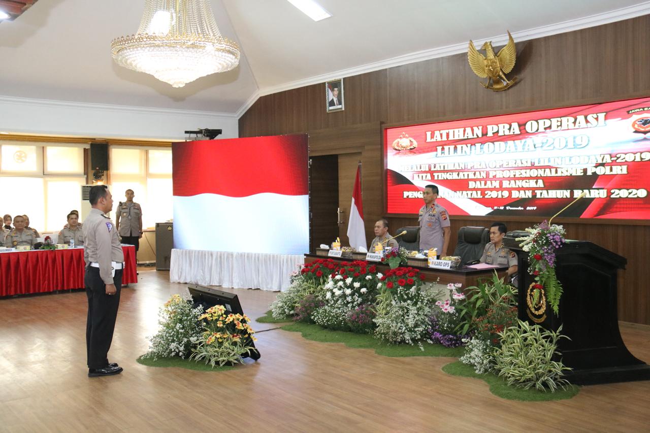 Thema dari latihan itu adalah ”Melalui latihan Pra Operasi Lilin Lodaya 2019, kita tingkatkan profesionalisme Polri dalam rangka Pengamanan Natal 2019 dan Tahun Baru 2020”.